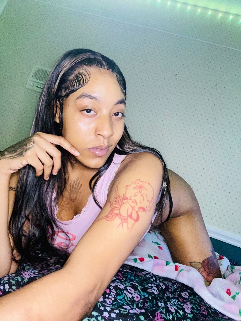 blend of Black & Indian beauty with glowing light skin, juicy lips, and a